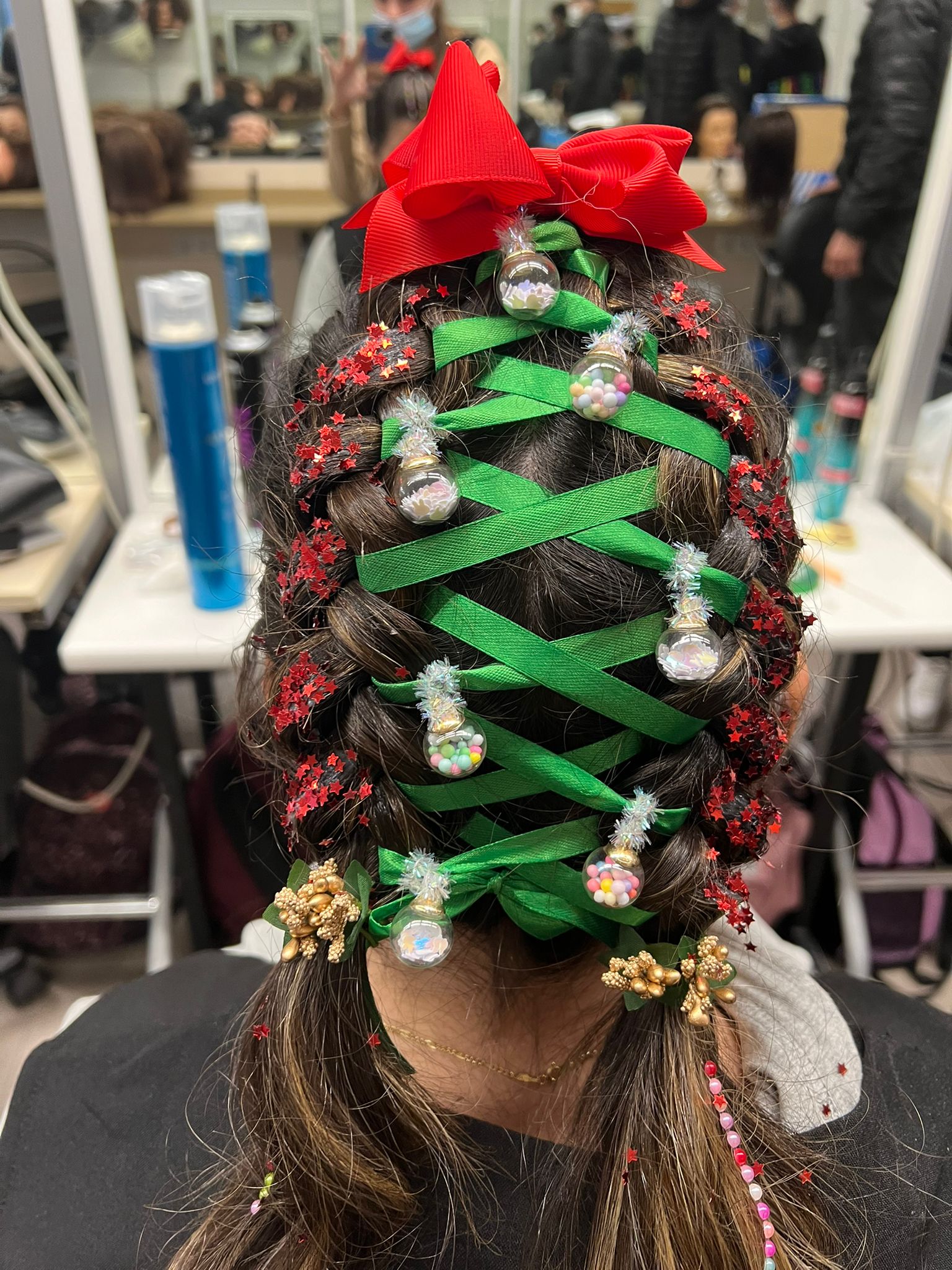 Avanzando con sus trenzados, la alumna Nerea Japón de 1° de Peluquería en el módulo de Peinados y Recogidos. Ha realizado este peinado inspirado en la fiestas Navideñas.